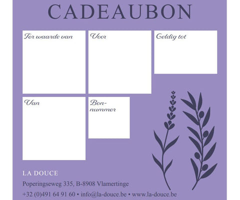 - De cadeaubon is 1 jaar geldig.